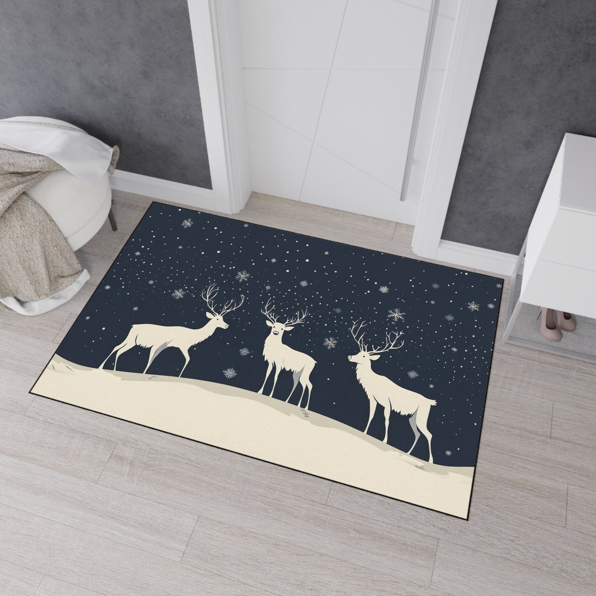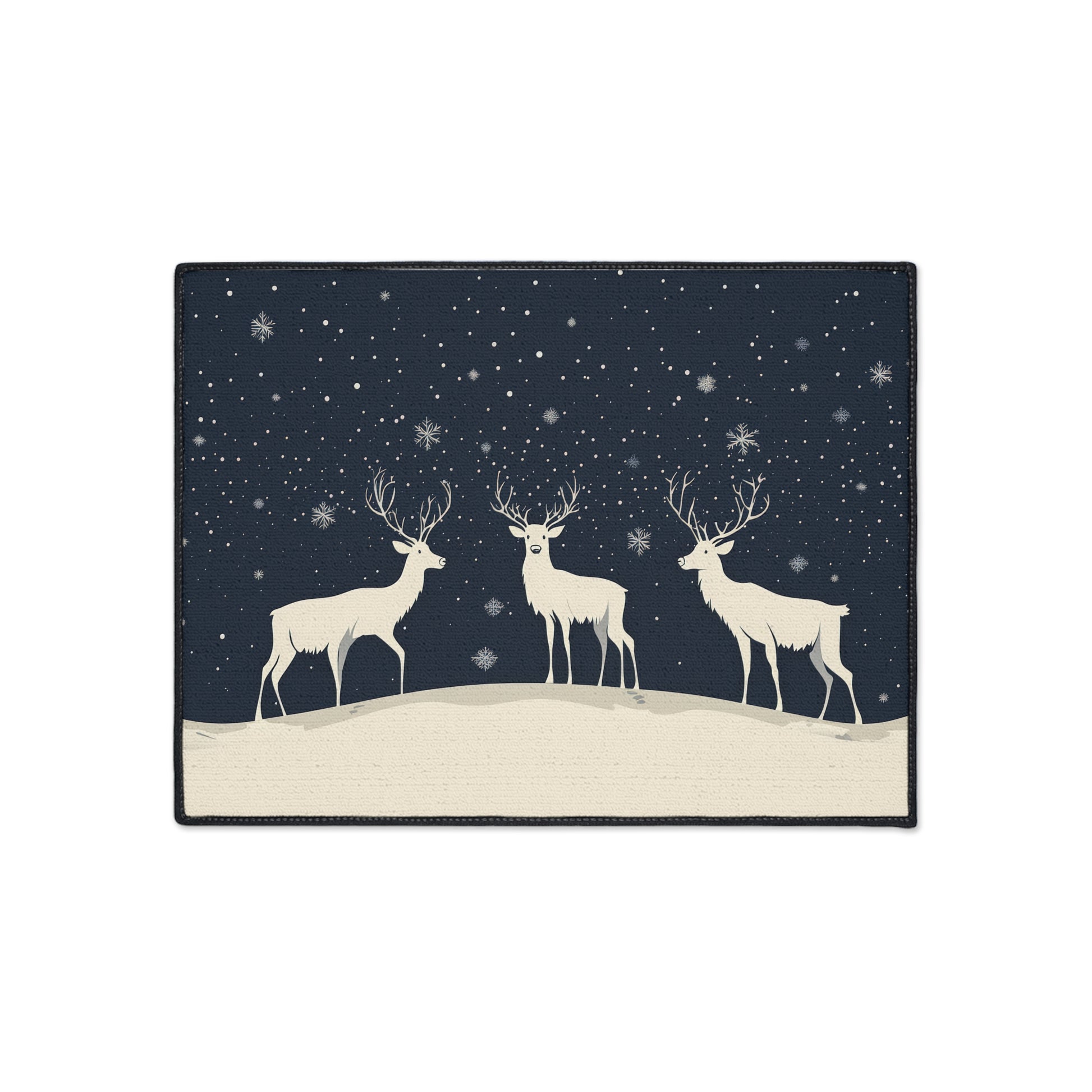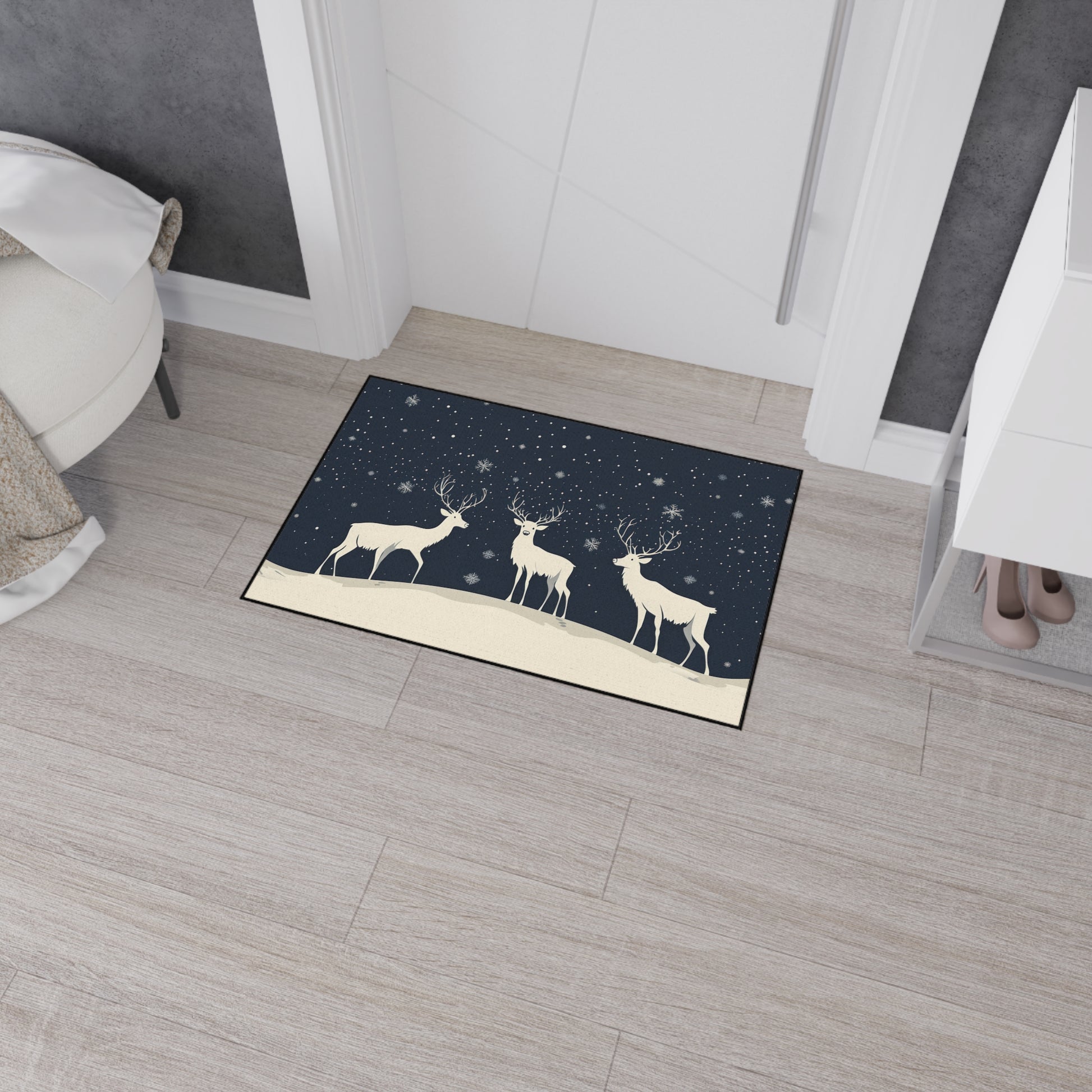 Winter Reindeer Heavy-Duty Floor Mat — Snowy Night Entryway Rug