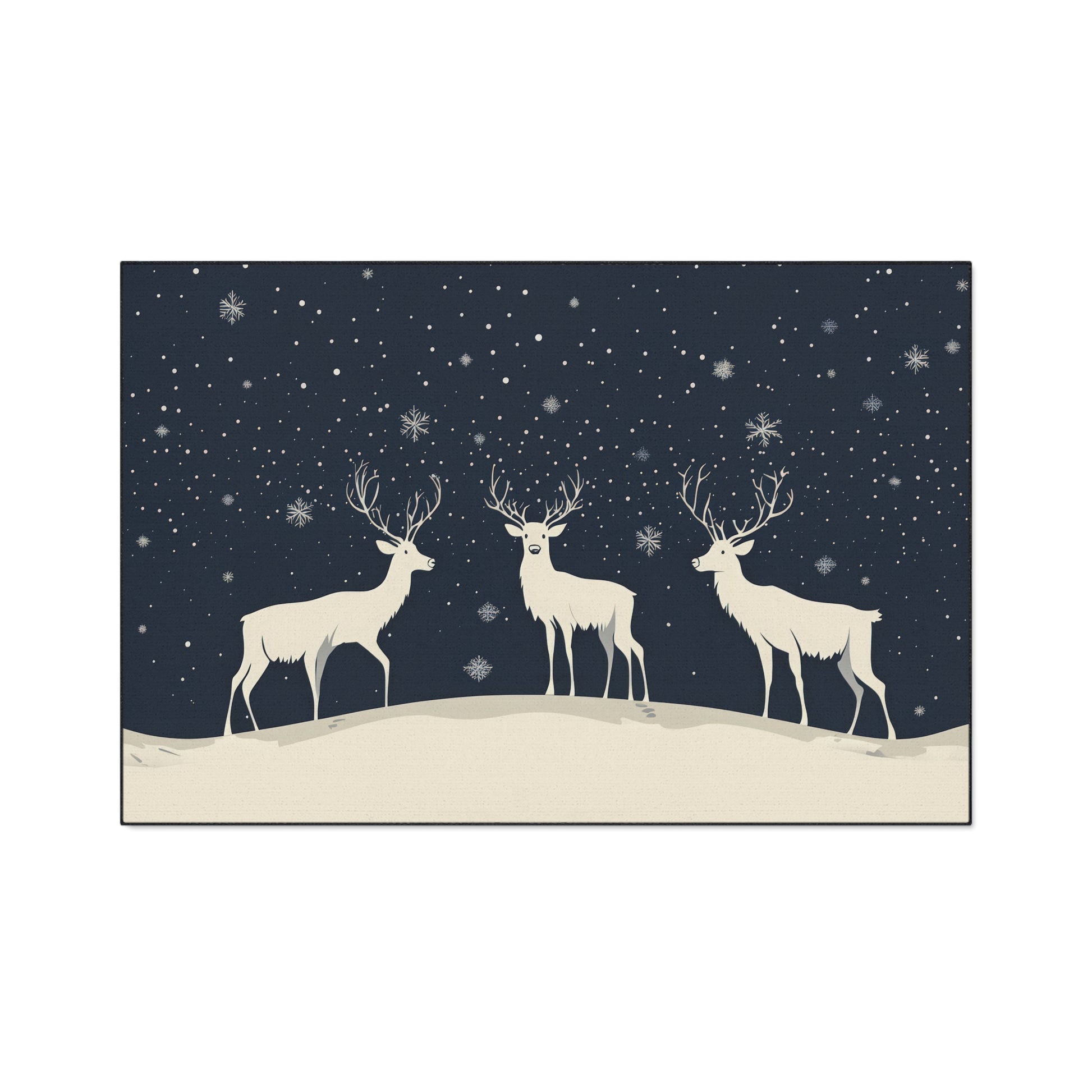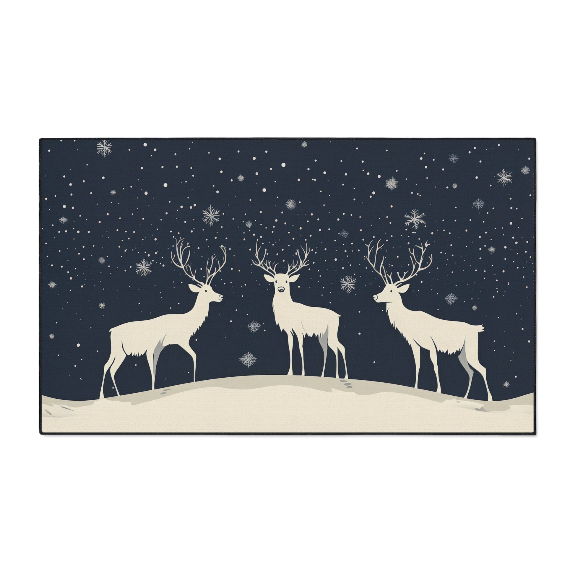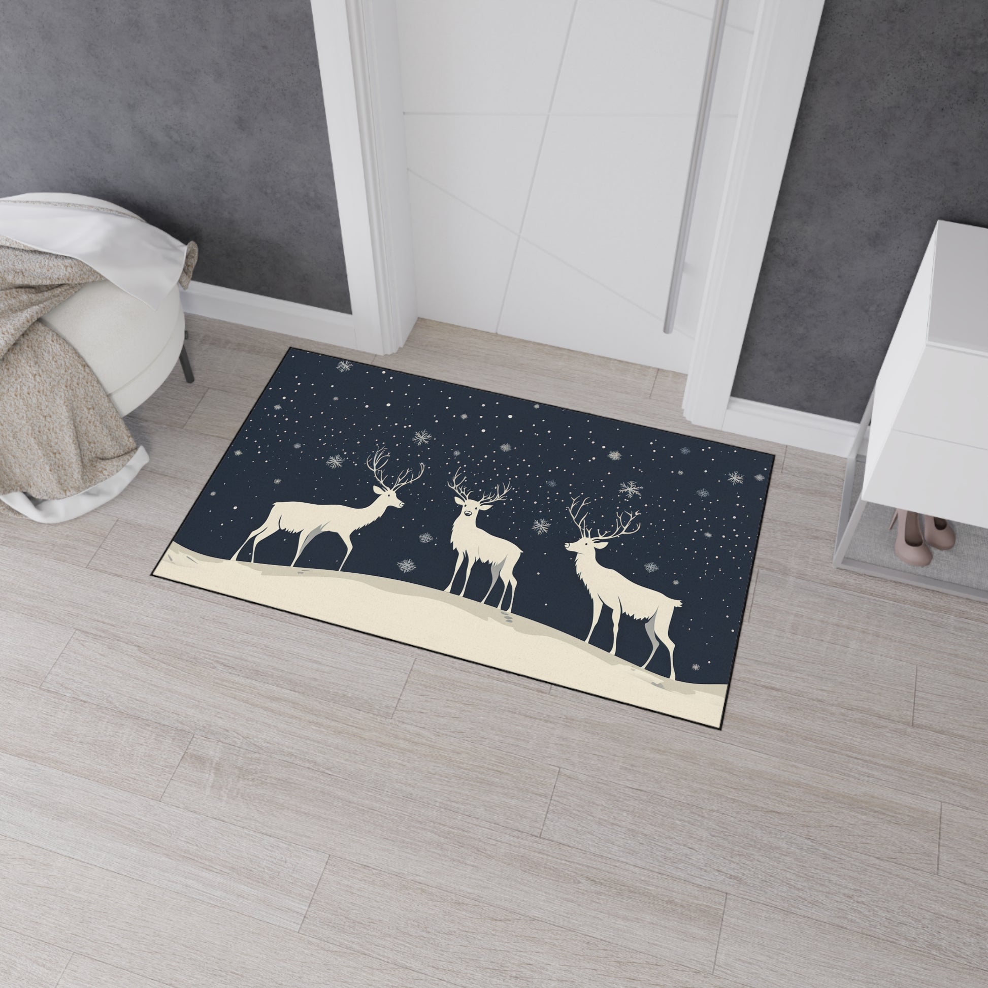 Winter Reindeer Heavy-Duty Floor Mat — Snowy Night Entryway Rug